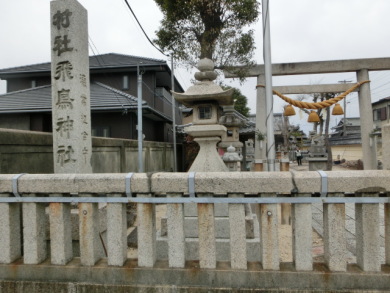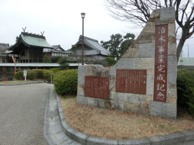 治水事業完成記念碑(奥の社が飛鳥神社) |