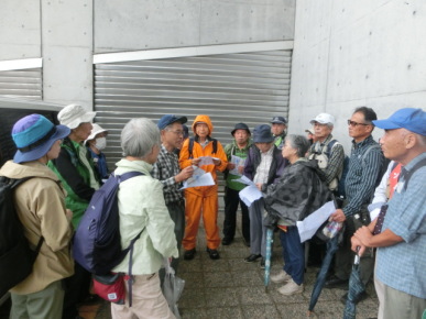 午後の出発の前に、ドーム前でY氏の埋め立て地の経緯などの