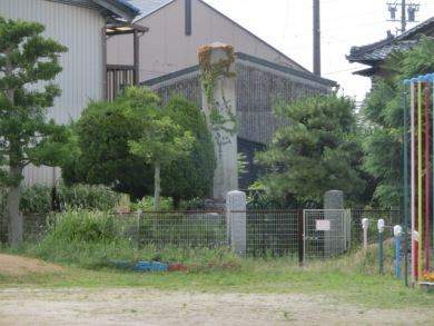 次は奥城跡です。碑は保育園の中にあり、近くには寄れません。門の外から見てここで