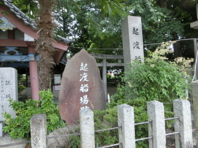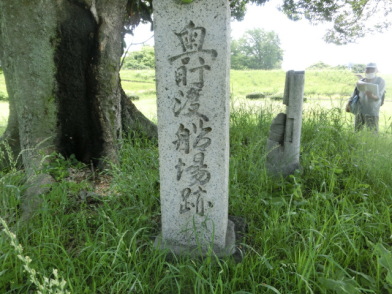 木曽川へ出ます。堤防を降りて、奥村渡船場跡の碑を見ます。隣には
