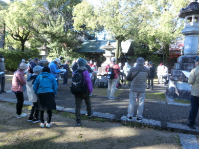 近くの貴船神明社で出発式です。朝から穏やかな晴天に44名の参加者です。