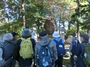 出発式を終えて、広い境内を1周します。ここが奥村永福の生誕地と言うことで