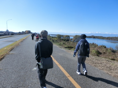 12月と思えない暖かく全く穏やかな日です。車の通らない堤防上を