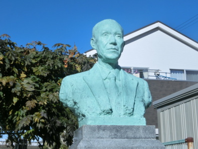 胸像が立っています。孫に当たる方が参加されています。話をしてもらいました。